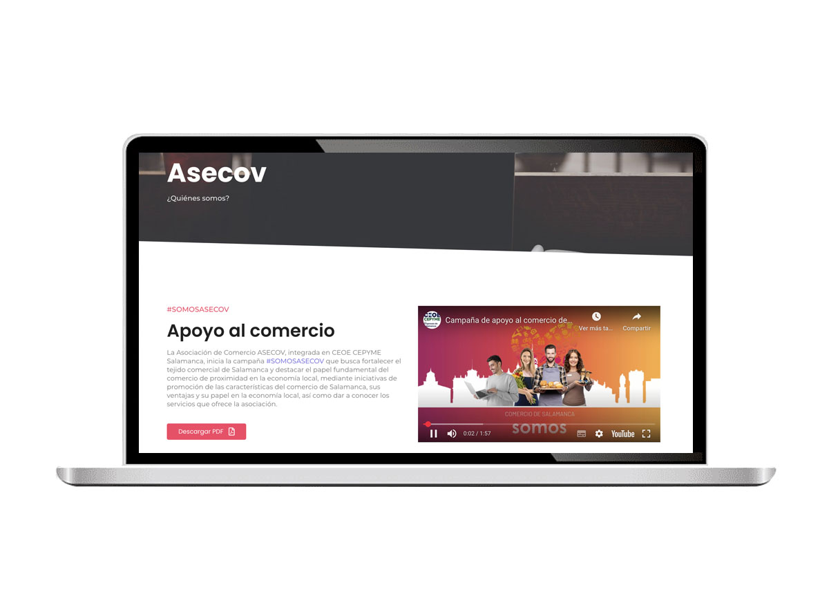 Web oficial de AECOV en la que se ofrece amplia información a los socios sobre los curso, campañas, formación y actos que lleva a cabo la asociación con el objetivo de apoyar y poner en valor al comercio salmantino. La asociación se encuentra dentro de la organización CEOE-CEPYME