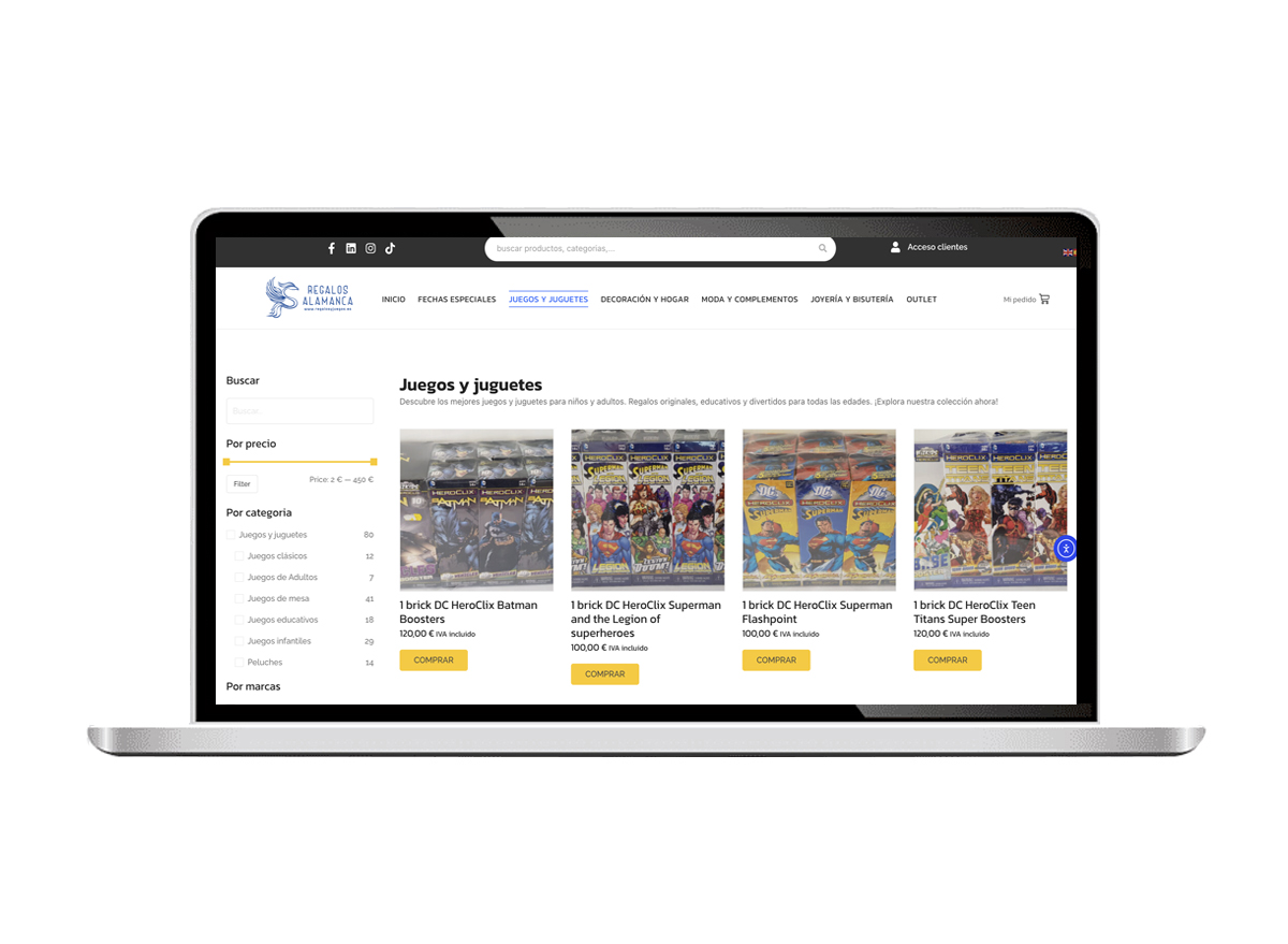 Plataforma de comercio electrónico para la difusión, puesta en valor y comercialización de artículos de decoración y hogar, juegos, juguetes, moda y complementos, joyería y bisutería, fechas especiales…